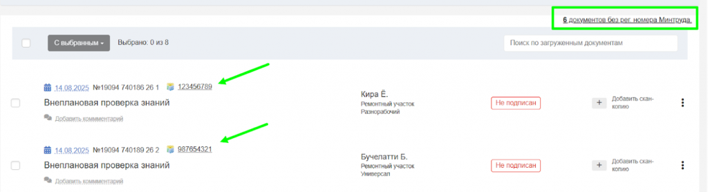 Далее, в реестре обученных лиц вы подписываете ЭЦП, и документам присваиваются номера из реестра.