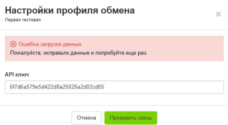 Если же проверка связи не прошла, отобразится соответствующее уведомление об ошибке: