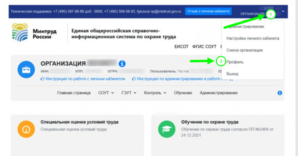 Чтобы получить ключ, авторизуйтесь в личном кабинете Минтруда нужной организации и перейдите в профиль пользователя: https://lkot.mintrud.gov.ru/: