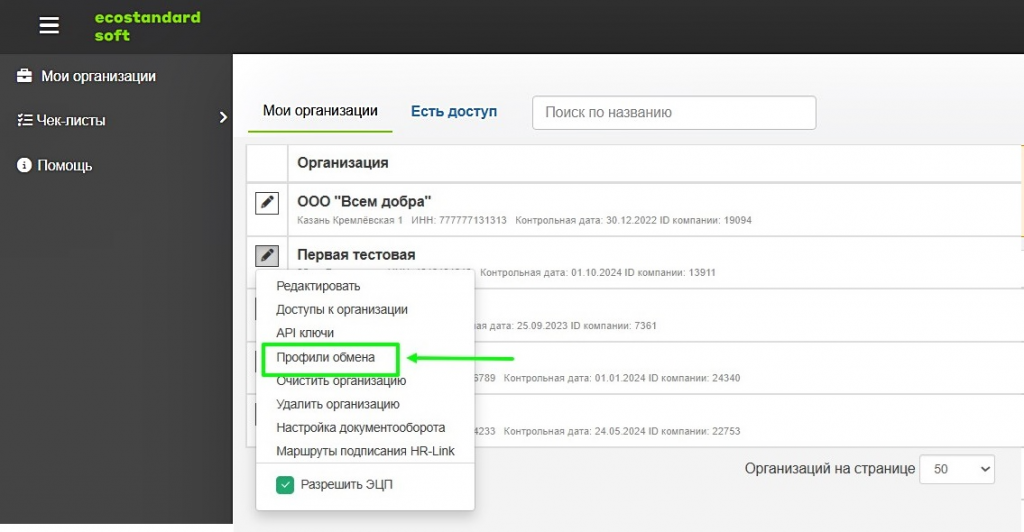 В первую очередь укажите профиль обмена с Минтрудом в разделе «Мои организации» – «Карандаш» – «Профили обмена».